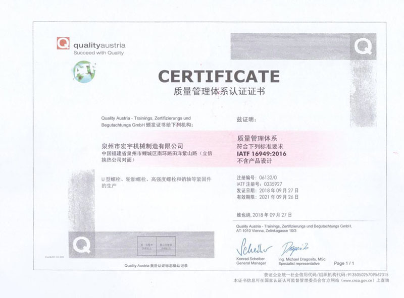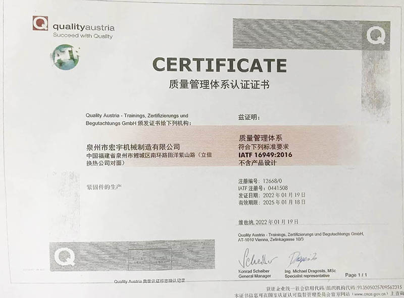 我公(gong)司以(yi)IATF 16949:2016質量(liang)管理(li)體系(xi)爲導(dao)向,對(dui)生産(chan)全過(guo)程進(jin)行管(guan)理,使(shi)我公(gong)司所(suo)生産(chan)的産(chan)品品(pin)質優(you)良、價(jia)格合(he)理。公(gong)司擁(yong)有一(yi)👧🏾批高(gao)素質(zhi)的領(ling)導班(ban)子和(he)職工(gong)團隊(dui),依靠(kao)不斷(duan)創新(xin)、追求(qiu)卓越(yue)的理(li)念,不(bu)段引(yin)進新(xin)技術(shu),開發(fa)新産(chan)✡️品,以(yi)完善(shan)👨🏻🏭我公(gong)司的(de)産品(pin)系列(lie),适應(ying)市場(chang)的不(bu)斷需(xu)求,使(shi)宏宇(yu)産品(pin)能夠(gou)立足(zu)于激(ji)烈的(de)市場(chang)🧛🏾♀️競争(zheng)中。